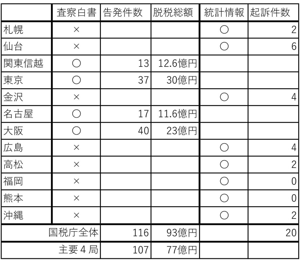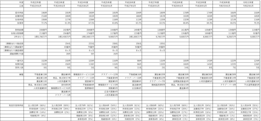 国税庁は、毎年6月に、「査察白書」を公表しています。