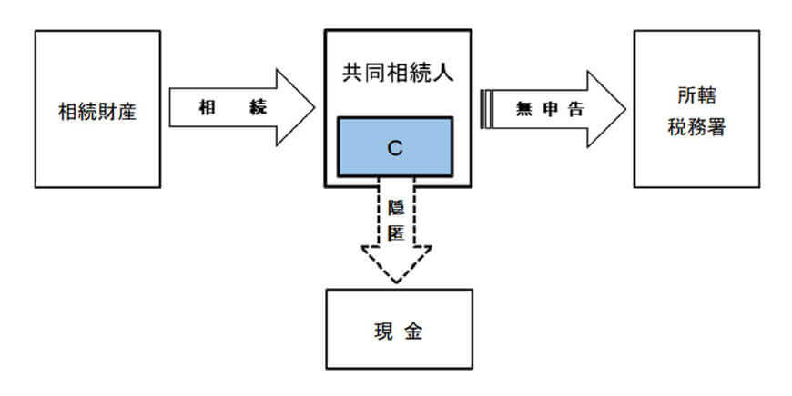 Cは、親族の死亡に伴い多額の財産を他の相続人とともに共同相続したものですが、相続財産である現金を複数の場所に隠匿した上で、相続税の申告書を申告期限までに提出せずに、多額の相続税を免れていました。