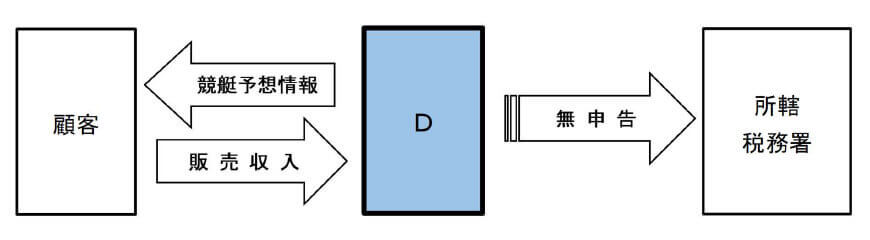 Dは、ウェブサイト上で競艇予想情報の販売を行う者ですが、当該販売収入について所得税の申告義務を認識していたにもかかわらず、確定申告書を提出しないまま法定納期限を徒過させ、所得税を免れていました。